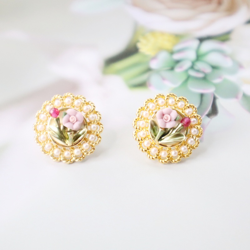 Framed in a golden lace of pearls, this delicate piece features a sculpted rosebud just beginning to bloom. Inspired by early morning dreams and cottage garden strolls, it captures a moment of quiet beauty.