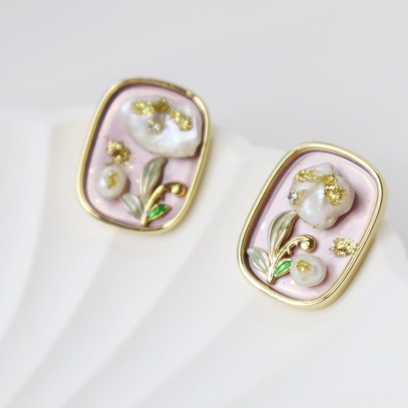 With creamy pink enamel and textured golden blooms, this design was born from an early morning walk through a foggy peony garden, where sunlight peeked through dew-covered petals like glittering whispers of warmth.